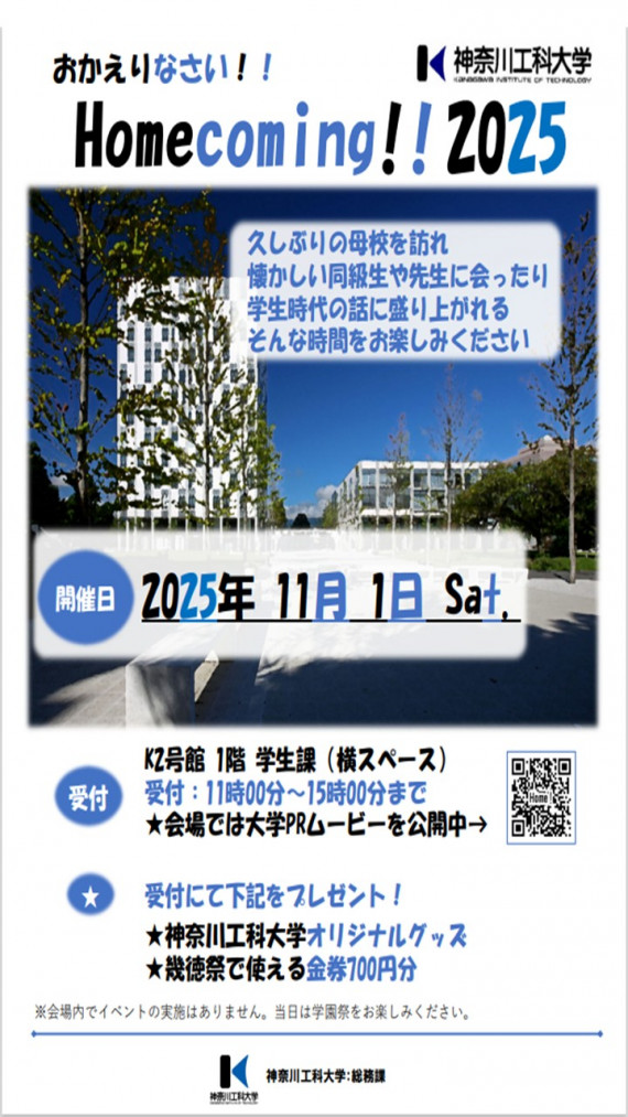 Homecoming Day will be held at the 50th IKUTOKU-SAI Festival in the following schedules: