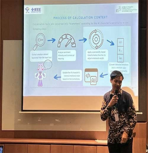 Fuad Zaki Nurrahman said, I participated in this international academic exchange program which was held at our partner university in Japan, Kanagawa Institute of Technology (KAIT) with the scholarship from JASSO from February through March in 2025. I belonged to Takano Laboratory and perfomed research activities to give an AI charactor human-like feelings and personality which leads me to the prize this time.