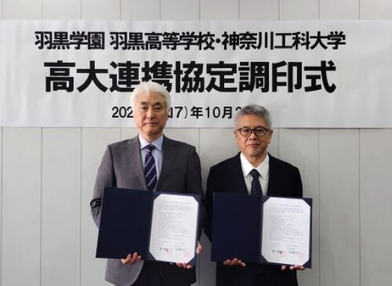 During the ceremony, Principal Kazushi Kato of Haguro High School and President Tetsuri Inoue of our university signed the agreement and exchanged views on future collaborative initiatives.