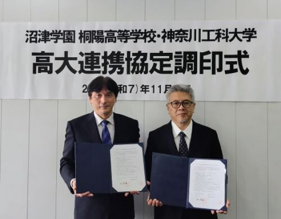 During the ceremony, Vice Principal Hajime Kanazashi of Tōyō High School and President Tetsuri Inoue of our university exchanged views on future collaborative initiatives.